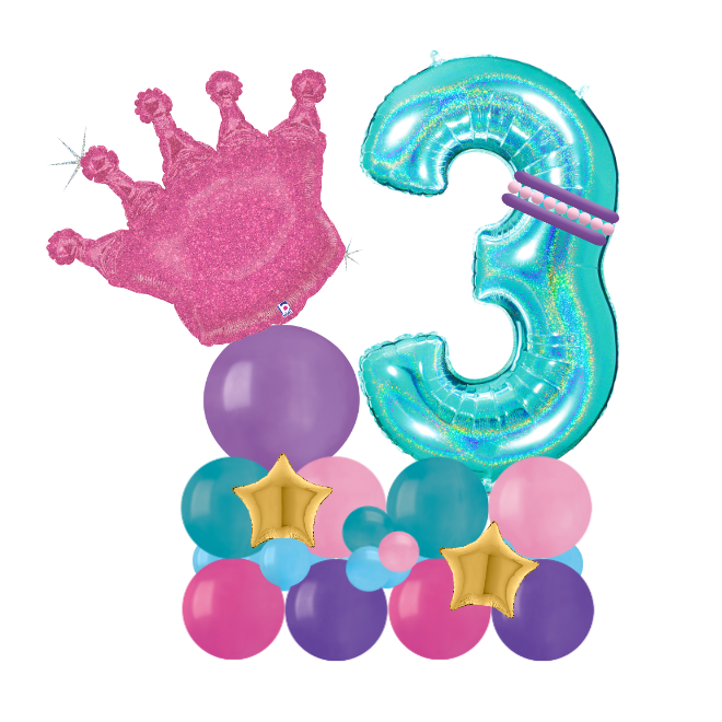 8 x 13" purple 8 x 13" Fuchsia 22 x 5" light blue 1 x 40" foil number 1 x 22" princess crown 1 x 19" lavender 2 x 9" gold star