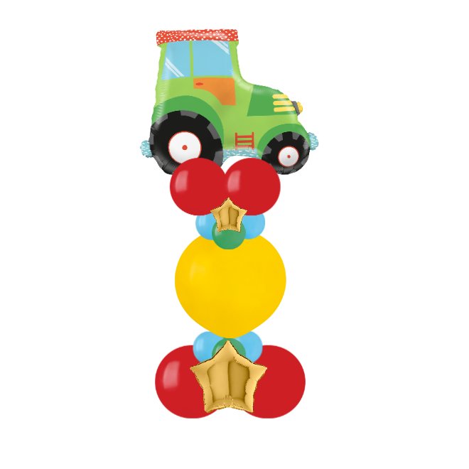 8 x 13" latex balloons 8 x 5" latex balloons 1 x 19" 2 x 9" stars 1 x 27" foil tractor